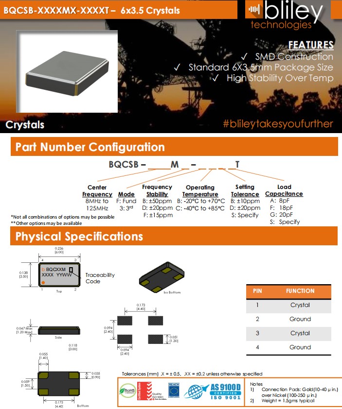 百利Bliley晶振,6G路由器晶振,BQCSB-38.400MF-BCDGT石英晶振,美國(guó)Bliley晶振公司,歐美進(jìn)口晶振,百利晶振,高品質(zhì)晶振,歐美晶振,6035晶振,四腳晶振,貼片晶振,石英晶振,6G通訊設(shè)備晶振,高精度儀器晶振,6G以太網(wǎng)晶振,無(wú)源晶振,SMD封裝,標(biāo)準(zhǔn)6X3.5mm包裝尺寸,高溫下高穩(wěn)定性