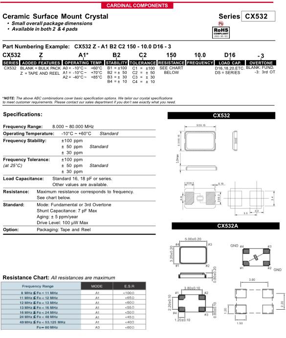 CX5無源晶體,Cardinal晶振,CX5Z-A2-B3-C460-12.0D16-3晶振