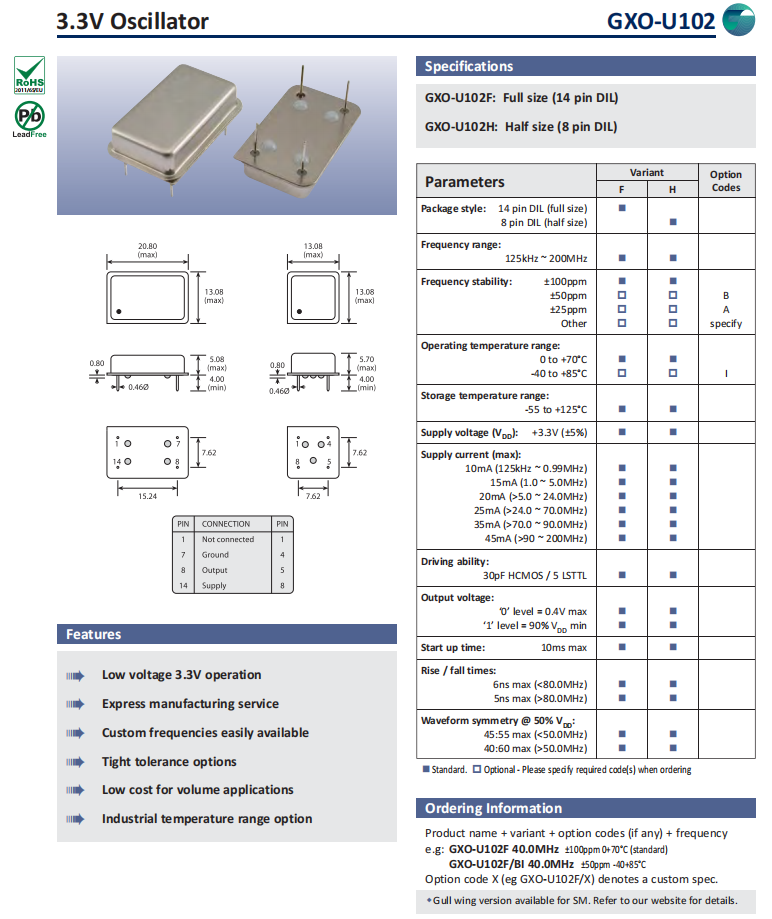 GXO-U102F/AI100.0MHz,6G無(wú)線通信晶振,歐美Golledge進(jìn)口鐘振,參數(shù)圖