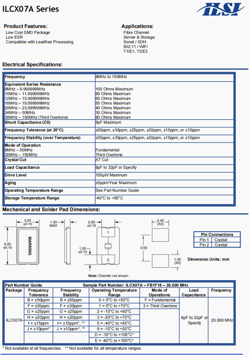 | ILCX07-BB3F12-16.000MHZ | ILSI | ILCX07 | 16 MHz | ±50ppm | ±50ppm | 12pF |