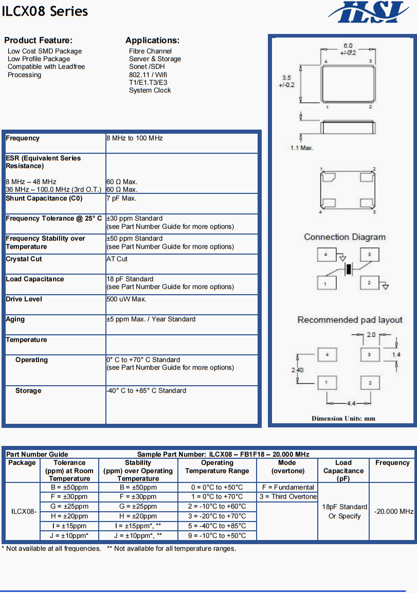 ILCX08智能穿戴設(shè)備晶振,ILCX08-JH5F10-14.31818MHz進口晶振,ILSI貼片6035晶振