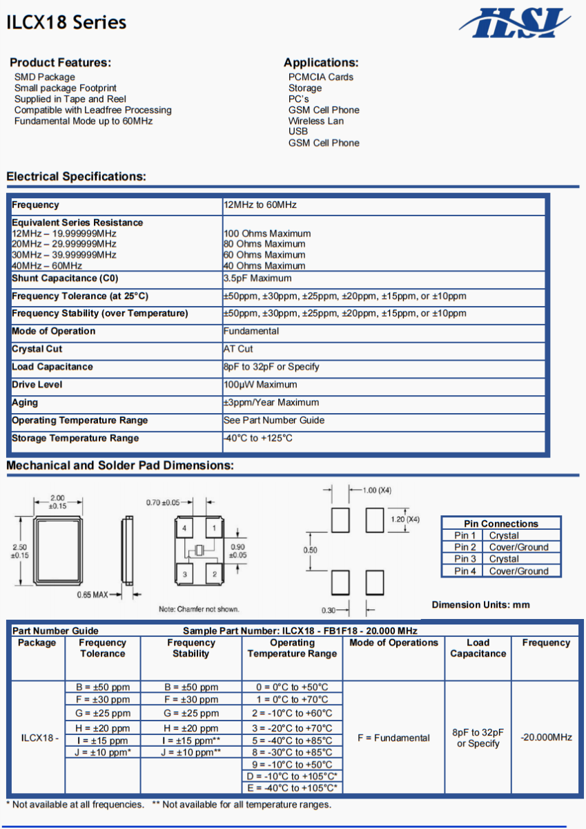 ILSI晶振 ILSI CRYSTAL -