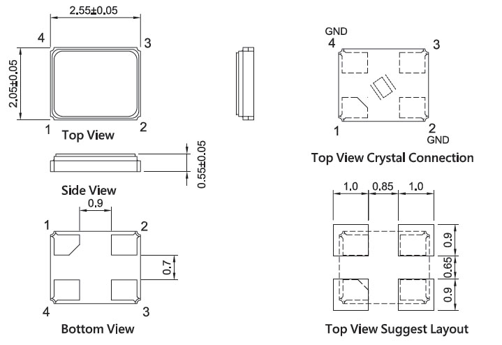 4.晶振外殼需要接地時,應(yīng)該確保外殼和引腳不被意外連通而導致短路.從而導致晶體不起振.