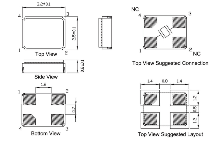 | Size/Dimension尺寸 | 3225臺(tái)產(chǎn)進(jìn)口晶振 | 安裝方式 Installation: | Surfacemount |