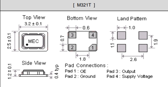 | Type 類型 | TCXO | Package Height高度 | 1.2mm |