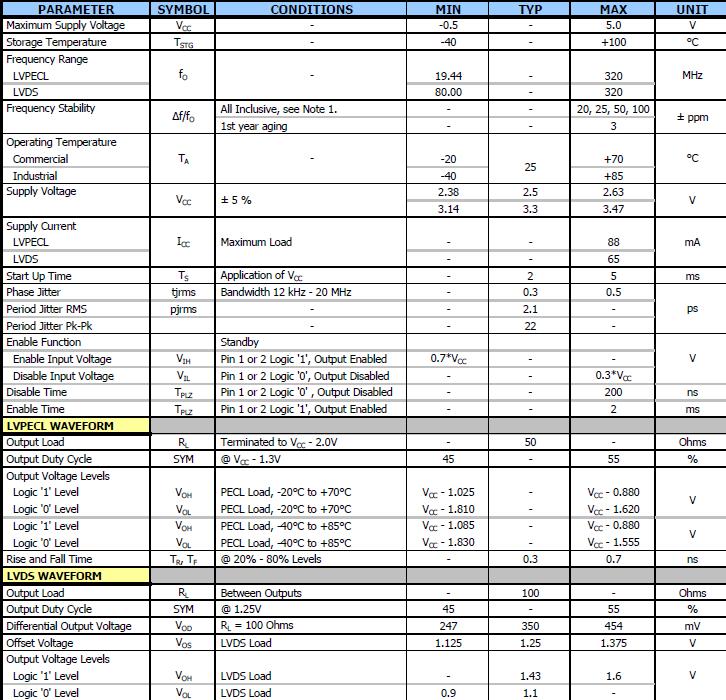 標準的7.0毫米x 5.0毫米,6-Pad表面安裝包,低相位抖動,0.5 ps RMS最大值,LVPECL或LVDS輸出,基本和第三泛音晶體的設(shè)計,頻率范圍19.44 - 320 MHz,頻率穩(wěn)定度±50 ppm標準,操作電壓+ 2.5 vdc或+ 3.3伏直流,操作溫度為-40°C + 85°C,允許輸出標準,磁帶和卷軸包裝標準,eia - 418,符合RoHS.