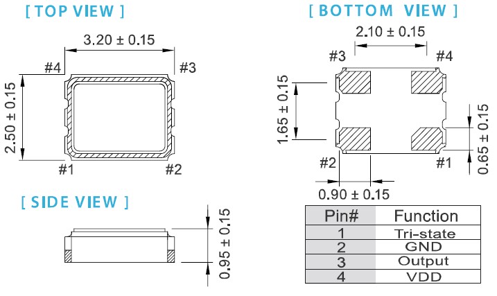 - 尺寸:3.2*2.5*0.95mm 詳細資料請查看PDF