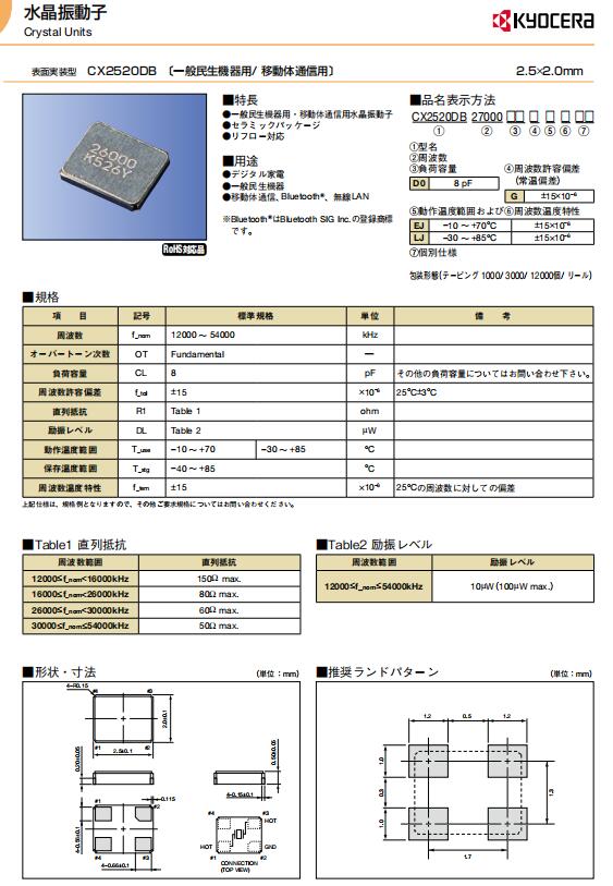 CX2520DB24000D0FLJCC-2520mm-Kyocera石英晶振-15ppm,參數(shù)圖