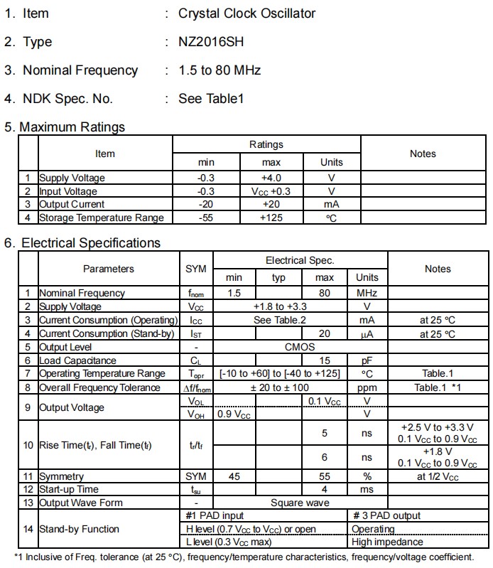 重復(fù)的溫度巨大變化可能會(huì)降低受損害的貼片石英晶振產(chǎn)品特性,并導(dǎo)致塑料封裝里的線路擊穿.必須避免這種情況. NZ2016SH-24.000MHZNSC5022C汽車(chē)導(dǎo)航系統(tǒng),NDK四腳貼片晶振