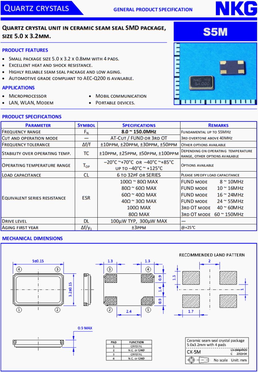 NKG晶振 NKG石英晶振 -