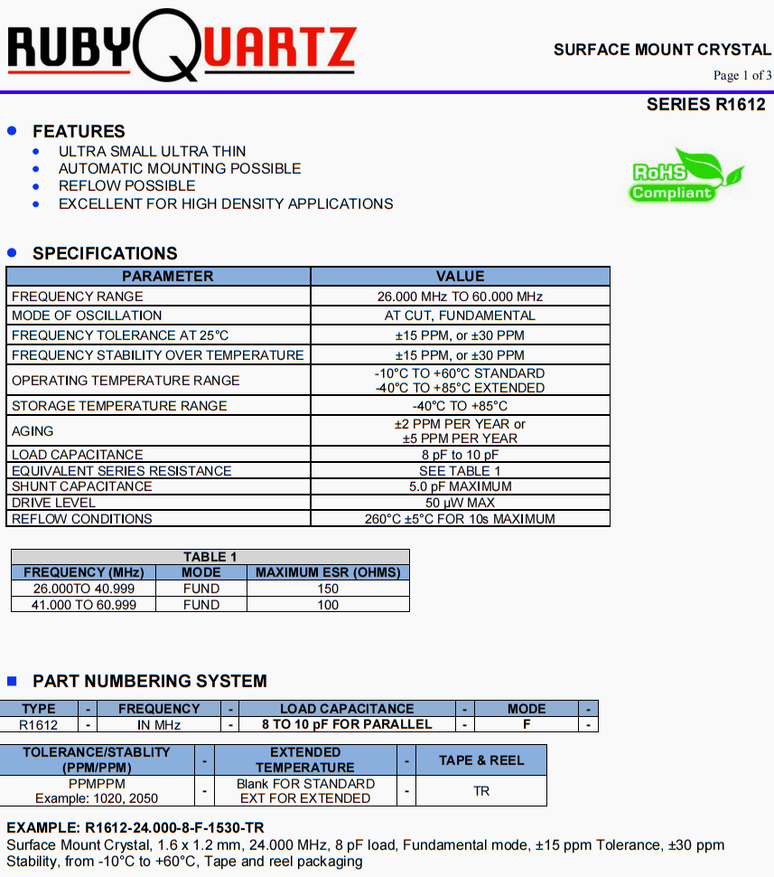 | 頻率容差 | ±15 PPM, or ±30 PPM |