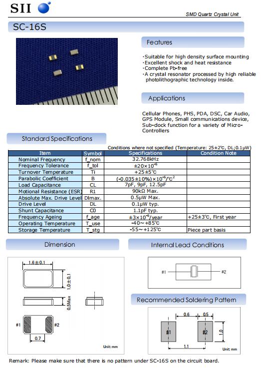 | Q-SC16S0322070CAAF | 精工晶振 | SC-16S | 32.768kHz | ±20ppm | ±20ppm | 7pF |