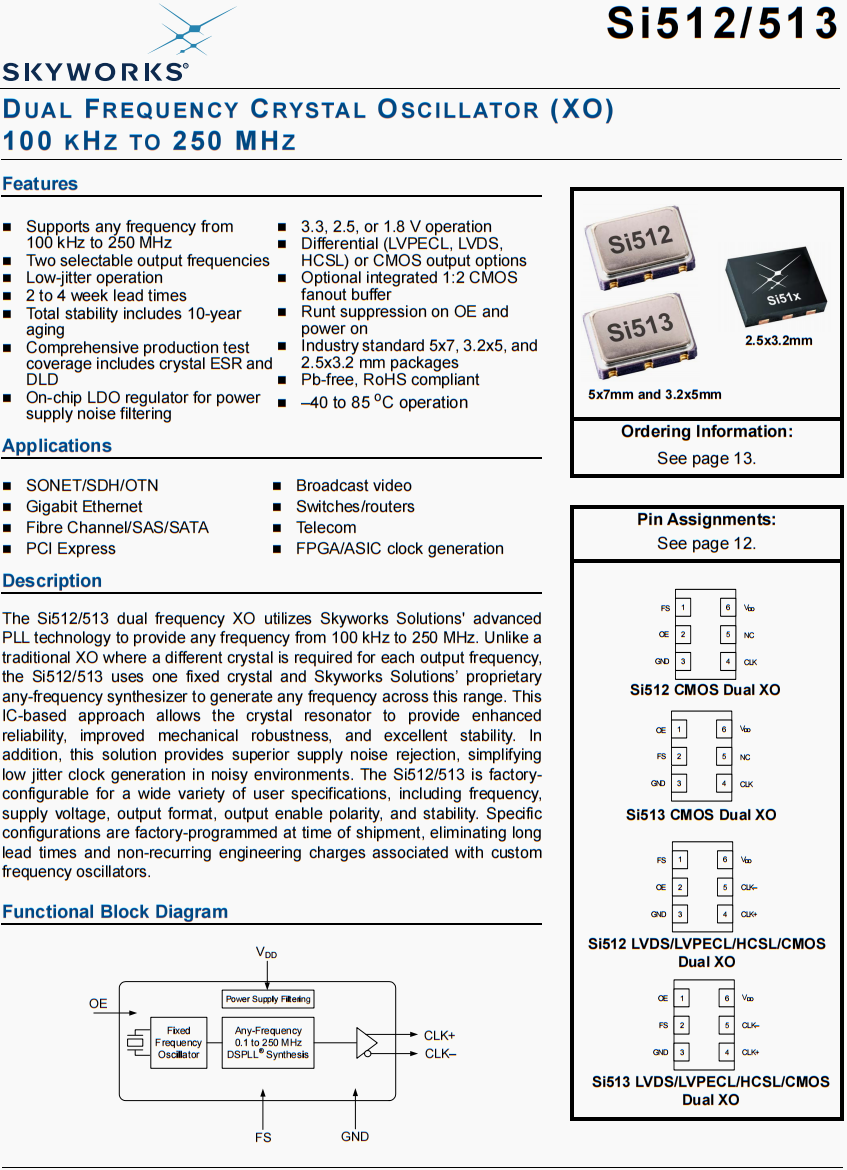 | 513BBA200M000AAG | Skyworks晶振 | Si513 | XO | 200 MHz | LVDS | 3.3V | ±25ppm |