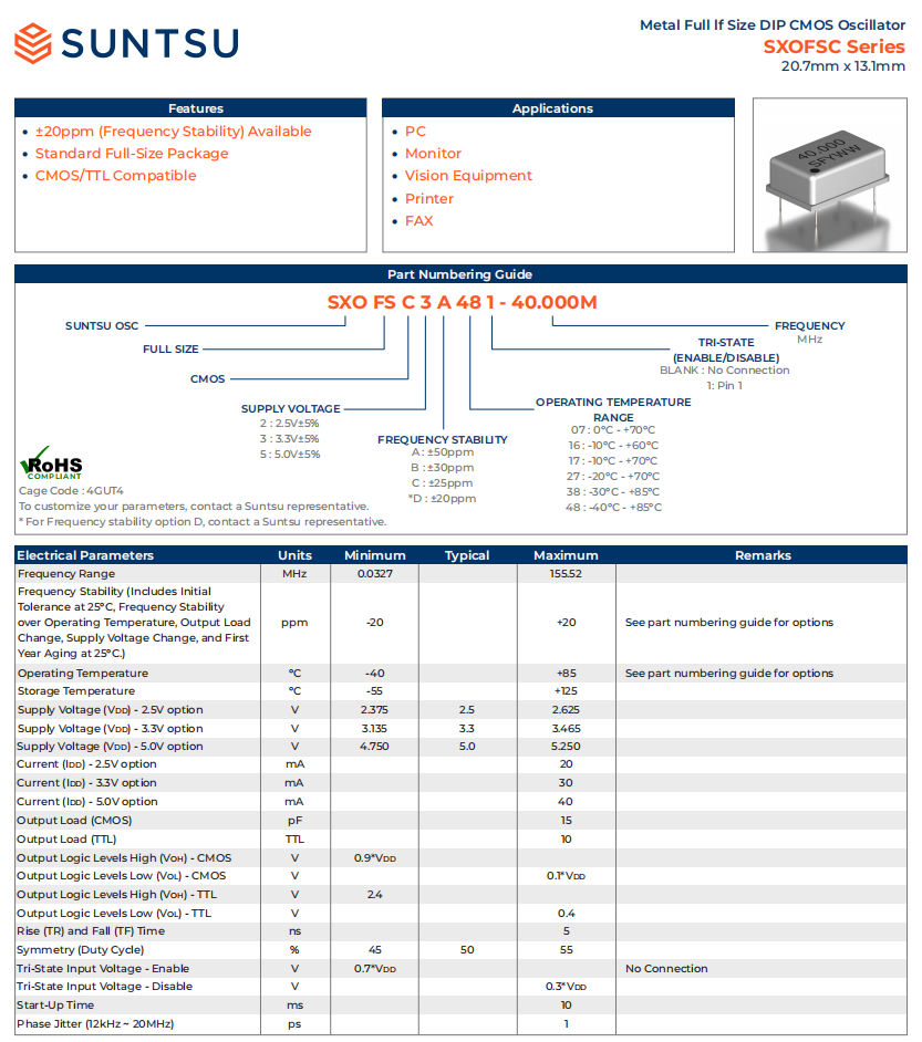 Suntsu晶振 Suntsu石英貼片晶振 -