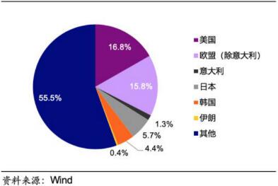 中國主要對(duì)外出口國及出口比例