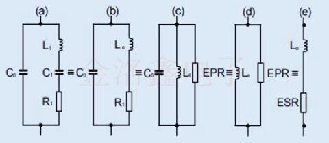 由于(Q)非常高,因此感抗與電阻之比很高,因此在(b)到(c)以及(d)到(e)的變換中,我們可以保持相同的電感值.我們可以說,”出于所有目的和目的”,與晶體并聯(lián)放置的負(fù)載電容器CL會(huì)以與晶體串聯(lián)的相同頻率(fL)與晶體諧振.因此,當(dāng)我們留下高電阻值(EPR)或低電阻值(ESR)時(shí),該頻率下的負(fù)載電流將與施加的電壓同相.