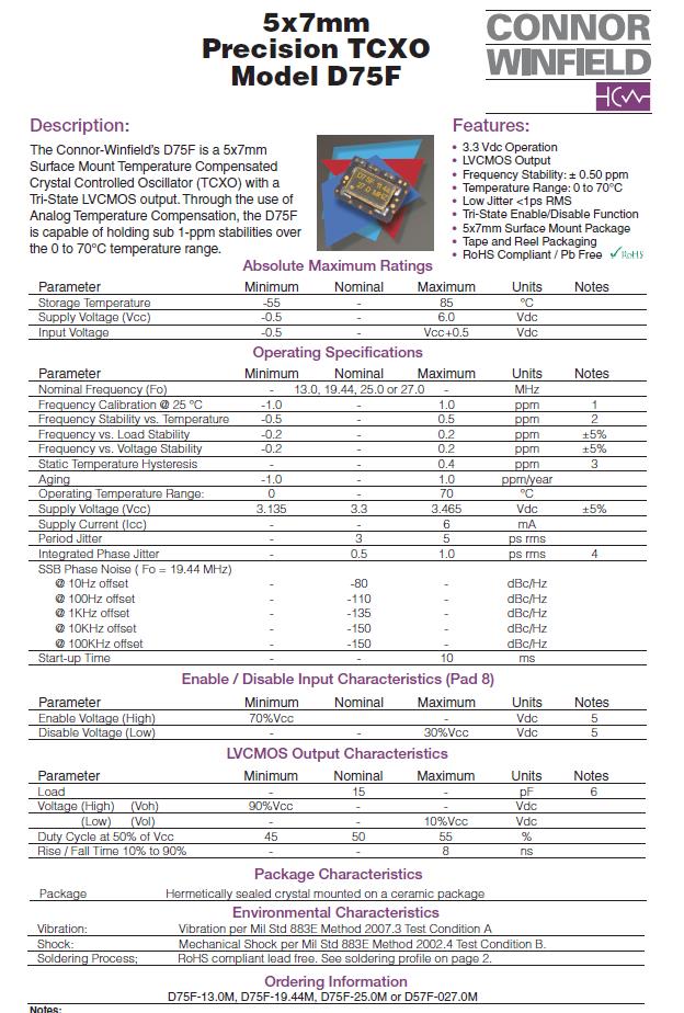 D75F系列的LVCMOS輸出溫補(bǔ)晶振D75F-027.0M專(zhuān)用羅拉無(wú)線(xiàn)模塊