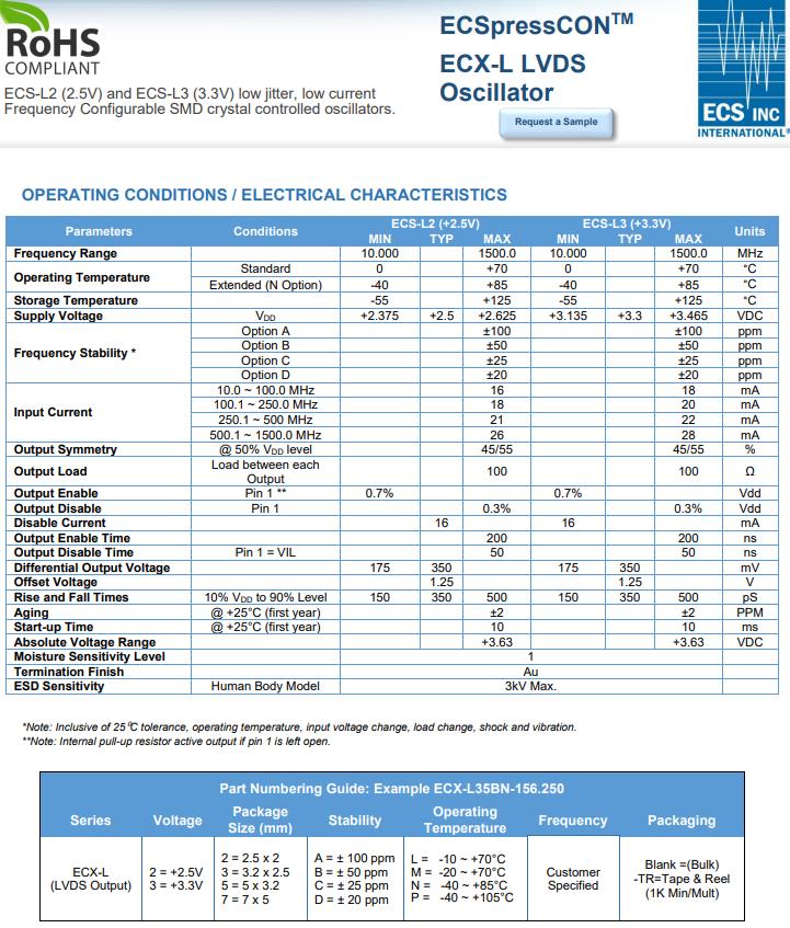 | ECX-L33BN-250.000 | ECS差分晶振 | ECSpressCON™ ECX-L | 250MHz | -40°C ~ 85°C |