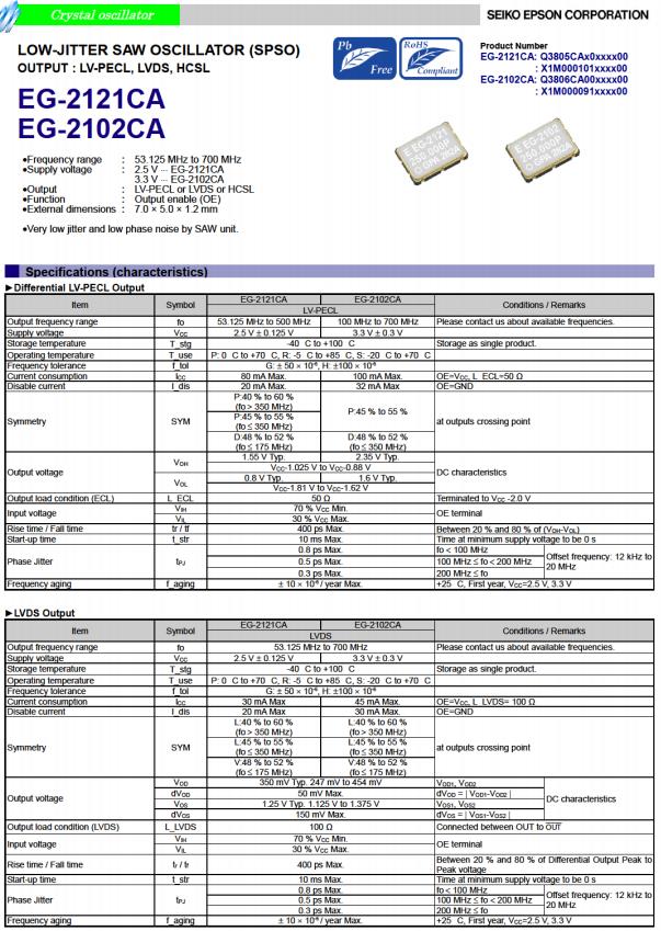 | Q3805CA10013400 | EG-2121CA | 156.250000 MHz | 7.00 x 5.00 x 1.20 mm | LVDS | 2.375 to 2.625 V | 0 to 70 °C |