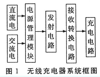 無(wú)線充電器系統(tǒng)主要采用電磁感應(yīng)原理,通過線圈進(jìn)行能量耦合實(shí)現(xiàn)能量的傳遞。如圖1所示,系統(tǒng)工作時(shí)輸入端將交流市電經(jīng)全橋整流電路變換成直流電,或用24V直流電端直接為系統(tǒng)供電。經(jīng)過無(wú)線充電器電源管理模塊后輸出的直流電通過2M有源晶振逆變轉(zhuǎn)換成高頻交流電供給初級(jí)繞組。通過2個(gè)電感線圈耦合能量,次級(jí)線圈輸出的電流經(jīng)接受轉(zhuǎn)換電路變化成直流電為電池充電。