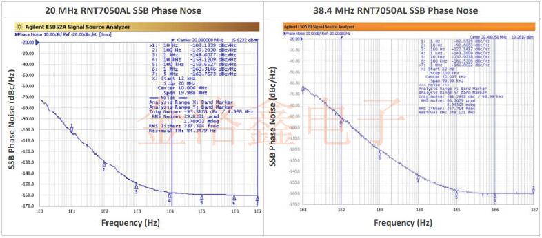 RNT7050A和RNT7050AL貼片晶振在10年內(nèi)均保持優(yōu)于1.5ppm的長(zhǎng)期穩(wěn)定性(老化).產(chǎn)品符合IEEE1588v2,ITU-TG.813,G.8273.2和G.8262和G.8262.1的嚴(yán)格要求.RNT7050系列的設(shè)計(jì)和工程認(rèn)識(shí)到5G遠(yuǎn)程無線電頭(RRH)空中接口需要緊密的誤差矢量幅度(EVM)限制掩碼,因此參考時(shí)鐘的相位噪聲對(duì)EVM的貢獻(xiàn)很小. 出色的低本底噪聲-160dBc/Hz使5GRRH能夠滿足嚴(yán)格的誤差矢量幅度掩模要求-使RNT7050系列石英晶體振蕩器成為無線電和網(wǎng)絡(luò)接口的首選設(shè)備.上面的圖1展示了一個(gè)RNT7050AL單元,其頻率輸出為38.4MHz,其本底噪聲低至-160dBc/Hz.RNT7050系列為5G和其他電信應(yīng)用提供了理想的解決方案,在這些應(yīng)用中,對(duì)溫度變化的低敏感性,低老化和低相位噪聲至關(guān)重要.