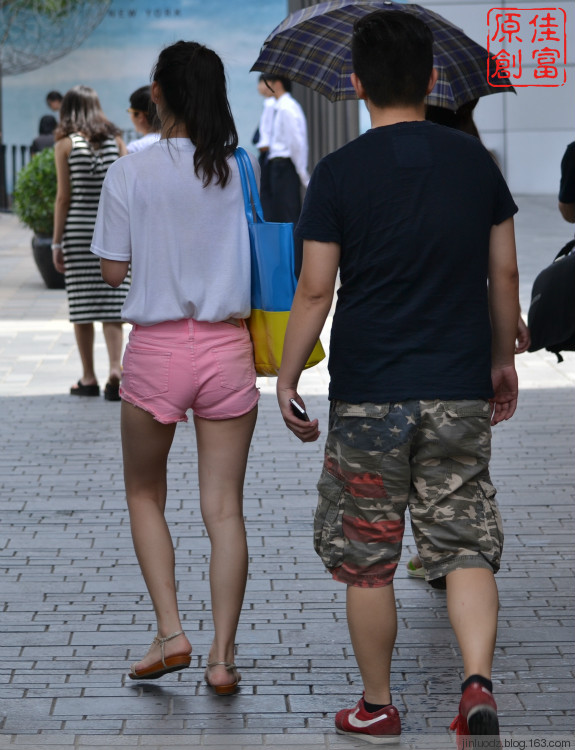 如果從設(shè)計上講,設(shè)計這種短褲的設(shè)計師真是很細心和大膽,他把這種短褲的尺度把握的非常好,似露非露讓人想入非非,我在拍攝的時候看到大多數(shù)男性童鞋們都把目光投在穿這種短褲的女性童鞋們的身上,可以說穿這種短褲去逛街回頭率可以達到百分之九十九點九!