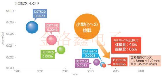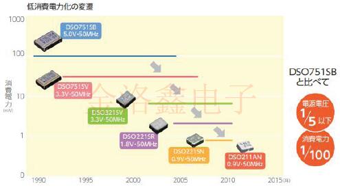 通過(guò)降低晶體產(chǎn)品的功耗,可以降低使用它們的電子設(shè)備(如計(jì)算機(jī),智能手機(jī)和平板電視)的功耗.一些功率是由熱能產(chǎn)生的,并且隨CO2的產(chǎn)生而產(chǎn)生,因此功耗的減少有助于減少CO2.以石英晶體振蕩器為例,DSO221SN(2.5×2.0×0.815mm)及其小型版本DSO211AN(2.0×1.6×0.72mm)的電源電壓為0.9V,約為DSO751SB的5V的1/5或更小.功耗已從90mW降低到0.9mW,不到1/100. 小型化的措施:
