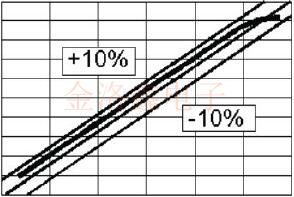 ●線性通常指定為相對(duì)于調(diào)整曲線的直線擬合的總調(diào)整偏差的百分比.10%的線性度規(guī)格將允許與1KHz調(diào)諧范圍的振蕩器的最佳直線擬合相差100Hz.潛在的問(wèn)題是,該偏差可能會(huì)在范圍的一端迅速出現(xiàn),如下所示.盡管振蕩器符合相當(dāng)嚴(yán)格的線性指標(biāo),但在曲線頂部的斜率明顯較低.對(duì)于調(diào)諧斜率會(huì)影響環(huán)路穩(wěn)定性的PLL系統(tǒng),除了線性百分比外,還應(yīng)指定曲線上所有點(diǎn)的最小和最大調(diào)諧斜率.