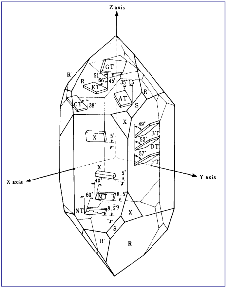 為了利用期望的振動模式并產(chǎn)生壓電效應,諧振器的晶片需要從石英晶格中以一定角度切割。多年來,人們給這些削減分配了首字母縮略詞,以便正確地定義它們。對于音叉晶體,在彎曲模式下工作,使用所謂的X切割,xy切割或nt切割。它們之間的差異與最終晶體單元的性質和制造技術有關。最常見的一種是X切割(也稱為X+2切割),它也用于圓柱晶振。
